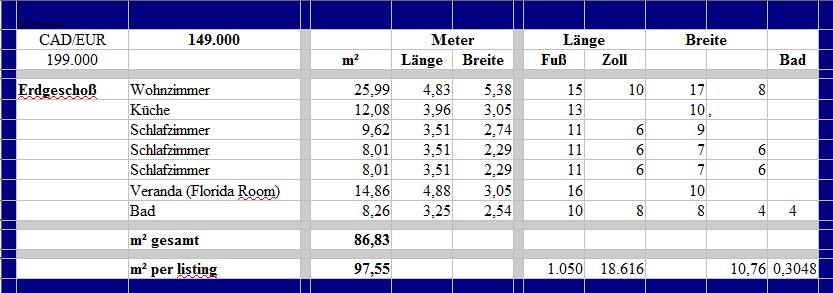 Das Grundstück wird mit 4,6 acre das sind etwa 18.500 m² (1,85 ha) angegeben.